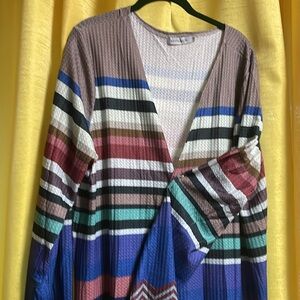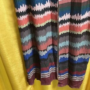 This is a lightweight material duster long length different shades of blues greens never worn brand new no smoking home