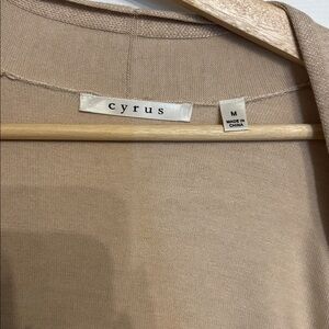 Tan duster. Button detail on cuffs. Front pockets. Washed but never worn.