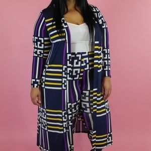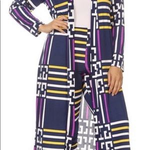 Two piece set. Duster jacket is open and pants are stretchy leggings fit. No belted closure for jacket.