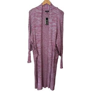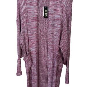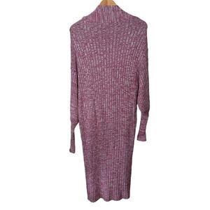 Duster Women Cardigan Sweater Marled Mauve Gray Open Front Oversized XS/S Ribbed