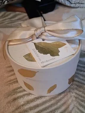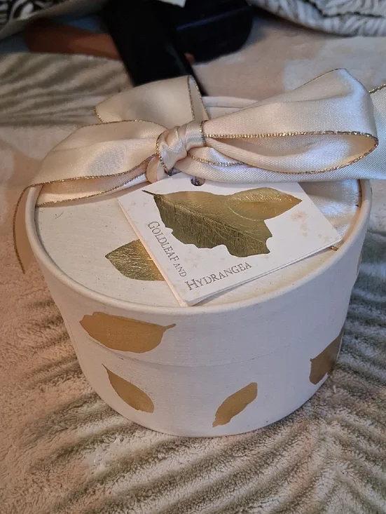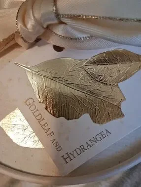 Gold leaf and Hydrangea ,perfumed dusting powder , vintage, never used.