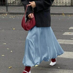 Dusty Blue Casual Women's Long Low Waist Flowy Elegant Skirt