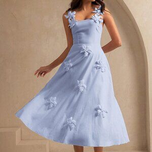 Dusty Blue Elegant Women's 3d Flower maxi dress