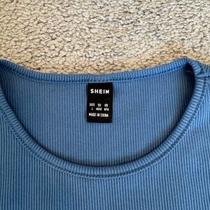 Chic ribbed top in dusty blue by SHEIN. Ideal for everyday style.
