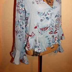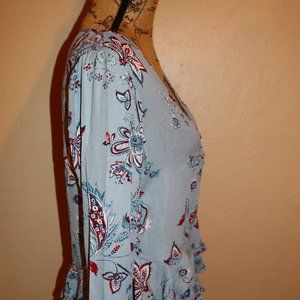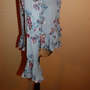 JustFab Dusty Blue Ruffle Button Front Top Brand New with Original Tags Never Worn Size: Small