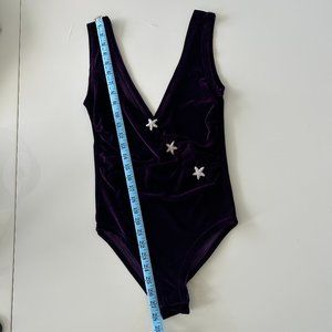 Dusty Daze purple velvet plunge front body suit with gold rhinestone starfish. Never worn! This piece is so beautiful but it was slightly too large for me. Size XS.