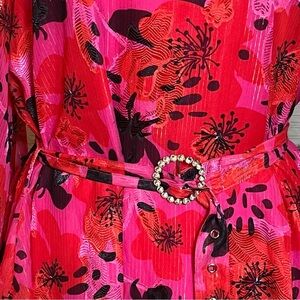 Dusty Daze Swing Dress Long Sleeve Fringe Cuffs Belt Festival Pink Red Boho Sz S