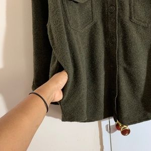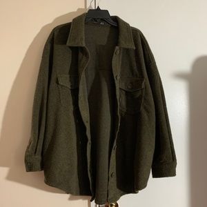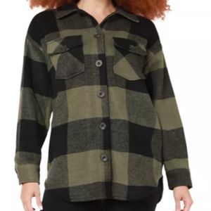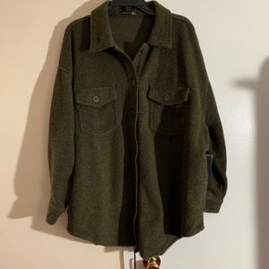 Dusty Olive-Khaki Black Tape_ Long sleeve Button down Shacket - Size 1X