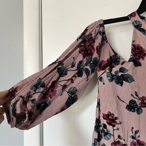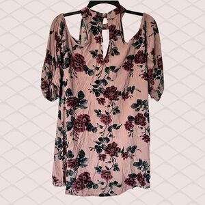 American Eagle • Dusty Pink Boho Dress • Size Medium • Floral Cold Shoulder Keyhole Halter Neck Crinkle Fabric Cutout • Spring Summer • Dusty Pink Dusty Mauve Blush Pink Burgundy