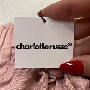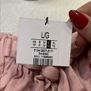 Stylish dusty pink high-waisted shorts with a tie waist. Features side pockets and a comfortable fit.