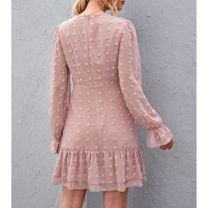 Dusty Pink Lace Insert Swiss Dot Layered Dress