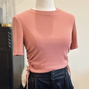 Dusty Pink Ribbed Top with Adjustable Side Rushing