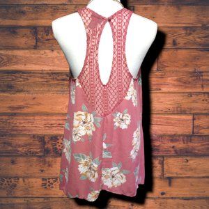 Dusty Pink Rue 21 Floral Camisole w/Handkerchief Hem