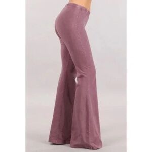 Dusty Rose Boho Mineral Wash Stretch Flared Bell Bottom Casual Pants