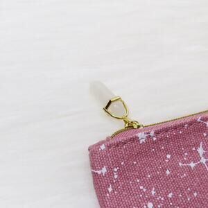 Ipsy Dusty Rose Pink Cosmetic Case. Constellation Galaxy Pattern with White Hexagonal Crystal Chakra Pendant Zipper Pull