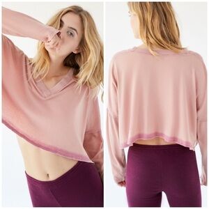 Dusty Rose Pink Dolman V-Neck Long Sleeve Crop Top