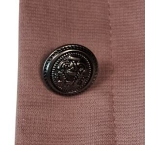 Step into a world of romantic fashion with this beautiful dusty rose pink jacket. The ruffled detailing adds a touch of femininity to the military-inspired design. It is a lightweight jacket, perfect for layering during transitional seasons. The collared design adds a touch of sophistication, making it suitable for both casual and semi-formal occasions. This blazer style jacket is perfect for creating light academia and pastel academia looks. Its preppy design will elevate any outfit with its unique color and stylish accents. This cardigan alternative is a statement piece that will turn heads.