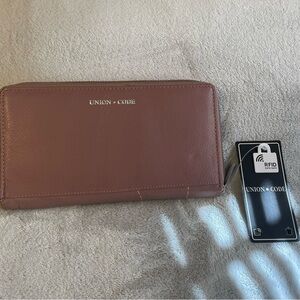Leather rose colored rfid protected leather wallet by Union Code NWT