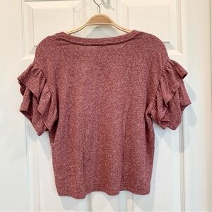 Dusty Rose Pink Soft Knit Ruffle Short Sleeves Tee T-Shirt Top