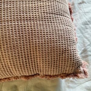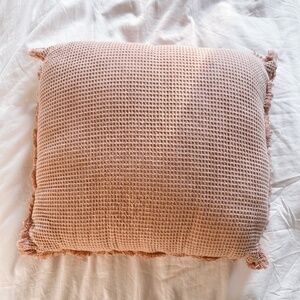 Elevate your space with the laid-back charm of this bohemian-inspired pillow, featuring a soft waffle-textured cover in a beige pink hue. Barely used, wish I could keep it!