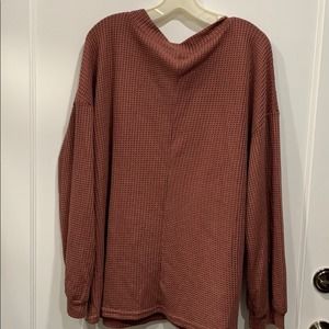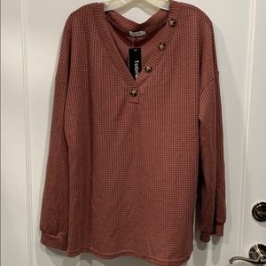 Dusty Rose Pink Waffle Knit Long Sleeve V-neck Top Pullover Popover