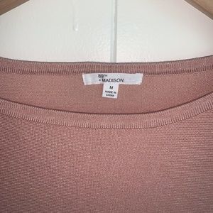 3/4 sleeve, Dusty rose sweater with dusty rose buttons down the right arm.