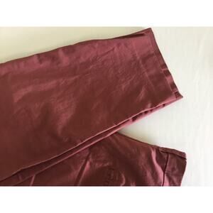Dusty Rose Trousers GEF France Silueta Amplia Inseam 28 Size 14. These new without tag trousers from GEF France's Silueta Amplia line are a size 14, featuring a comfortable pull-on style with a 19-inch flat waist (38 inches around), a 12-inch rise, and a 28-inch inseam. Crafted from a cotton and elastic blend, these pants offer a soft, stretchy fit in a beautiful dusty rose color with subtle purple undertones.