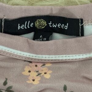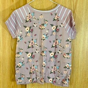 This top has a soft and vintage feel in a dusty rose color with floral details. It’s cropped to sit at the waist with a nice twist knot design, very flattering. Size L.
