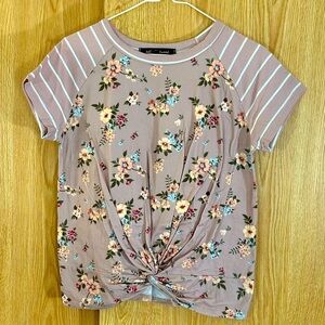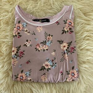 Dusty Rose/Floral Cropped Front Twist Knot Top