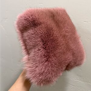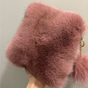 Dusty Rose Premium Real Fox Fur Wristlet/Phone Pouch/Crossbody & Fur Ball Charm