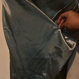 Dusty Sage Charmeuse Draped Strappy Dress Galina Signature Bridesmaid Bridal 14