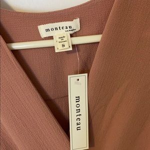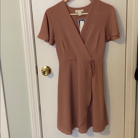 Dusty pink wrap flutter sleeve dress tie small NWT