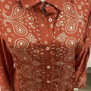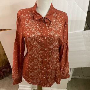 Dusty rose bandanna paisley print 100 cotton button front brand new