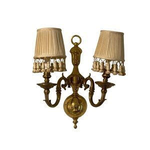 Dutch Baroque Style Solid Brass Two Light Sconce with Shades Vintage