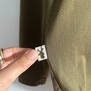 Stay comfortable in this lightweight Dutchwear by Dutch Bros long-sleeve performance top. Made from an 86% polyester / 14% spandex blend, it features a breathable textured fabric, embroidered “Dutch Bros Coffee” front logo, and ESTD 1992 windmill detail on the sleeve. Curved hem adds extra coverage and a modern fit. Color is an olive/army green.
