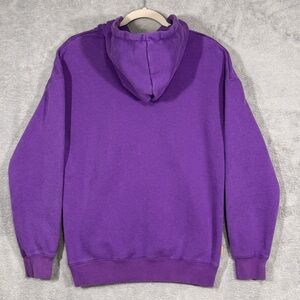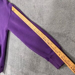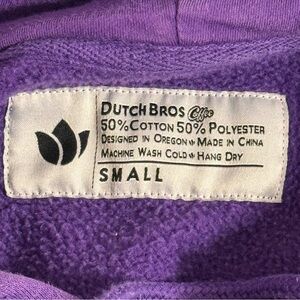 Dutch Bros Coffee “Radiate Kindness” purple pullover hoodie. Front graphic logo, kangaroo pocket, drawstring hood with metal tips. Soft fleece interior. Clean overall condition with light normal wear. See photos.