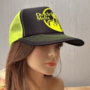 Dutch Bros Dutch Mafia Snap Back Mesh Cap Hat Unisex Neon Green Black OSFM