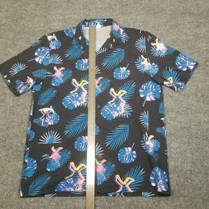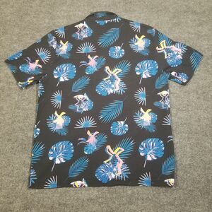 Dutch Bros Men Button Up Shirt X-Large Blue Leaf Print Hawaiian Short Sleeve