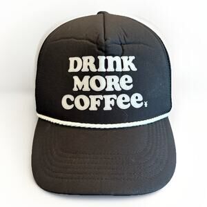 Dutch Bros Mens Black Drink More Coffee Adjustable Snapback Trucker Hat Mesh Cap