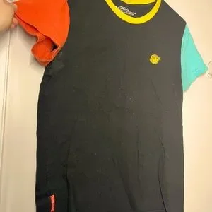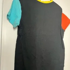Rainbow sleeved. Has a few bleach spots so you can fix it up if you want or make it your own! . All clothes come clean and washed / ironed. ✨