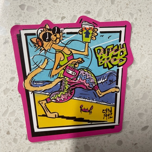 Vibrant sticker with a playful design. Features a cartoon character with bright colors.