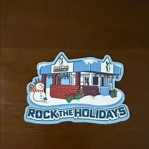 Five die-cut Dutch Bros stickers with bold, playful graphics. Includes phone slogan', turtle mascot, holiday shop, and monogram badge. Bright colors and clean outlines for easy application.