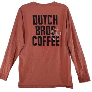 Dutch Bros T-Shirt Men L Long Sleeve Mauve Cotton Crew Graphic Print Rug Logos