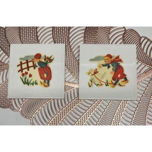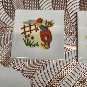 Dutch Child Wall Hanging Decorative Tiles Tulips Duck Decal Ceramic VTG Set