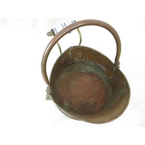 Dutch Copperware Fireplace Ash Coal Scuttle Bucket Delft Handle Lion delft blue