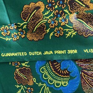 This Dutch Java African print cotton panel sarong tablecloth showcases a beautiful vibrancy with a geometric and floral pattern in green multicolor. Made from medium weight cotton fabric in the 1990s, this item measures 70 inches in length and 45 inches in width per panel making it perfect for clothing or home decor projects with an African style aesthetic. There are three consecutive panels available or I will cut into panels.