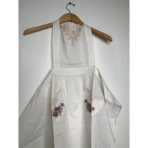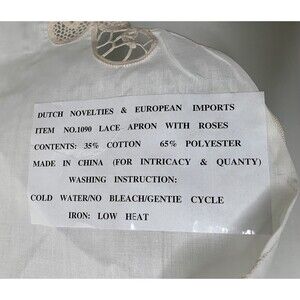Dutch Novelties Embroidered Roses Lace Cream Apron Pockets New Vintage Condition