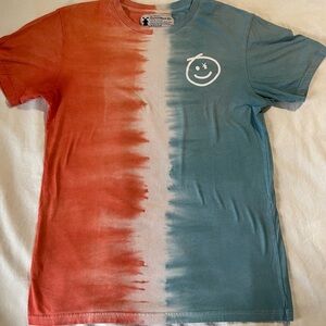 Dutch bros red white and blue tie-dye shirt, very used and has a stain from being worn at work, men’s size medium