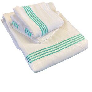 This Queen size duvet cover set includes a duvet cover and two pillow shams, offering a cohesive look for your bedroom. Made from polyester, it provides a soft and durable option for your bedding needs. The green striped design adds a touch of elegance to the classic white background.