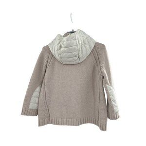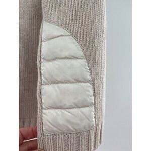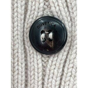 Duvetica Beige White Wool Blend Hooded Cardigan Quilted Accents Button Closure